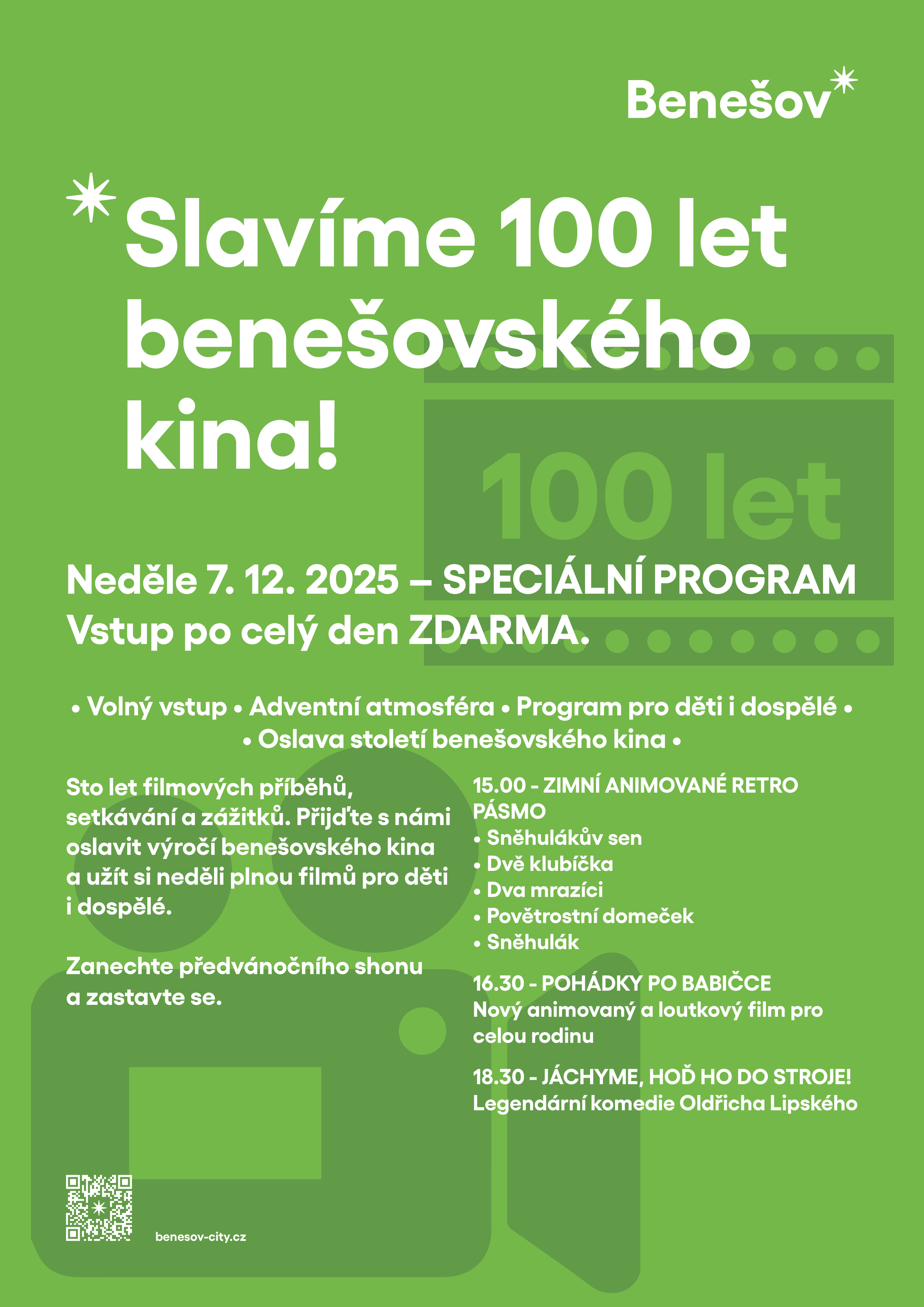 Adventní promítání je nejen filmovým dárkem pro benešovské diváky, ale i symbolickou oslavou neuvěřitelných 100 let existence benešovského kina. Přijďte se na chvíli zastavit, vychutnat si atmosféru starých i nových filmů a společně oslavit místo, které po celé století nabízí Benešákům prostor k setkávání. Program připravilo město Benešov ve spolupráci s dlouholetým provozovatelem benešovského kina, společností KINO-AGENTURA zastoupené Ladislavem Jenšíkem.