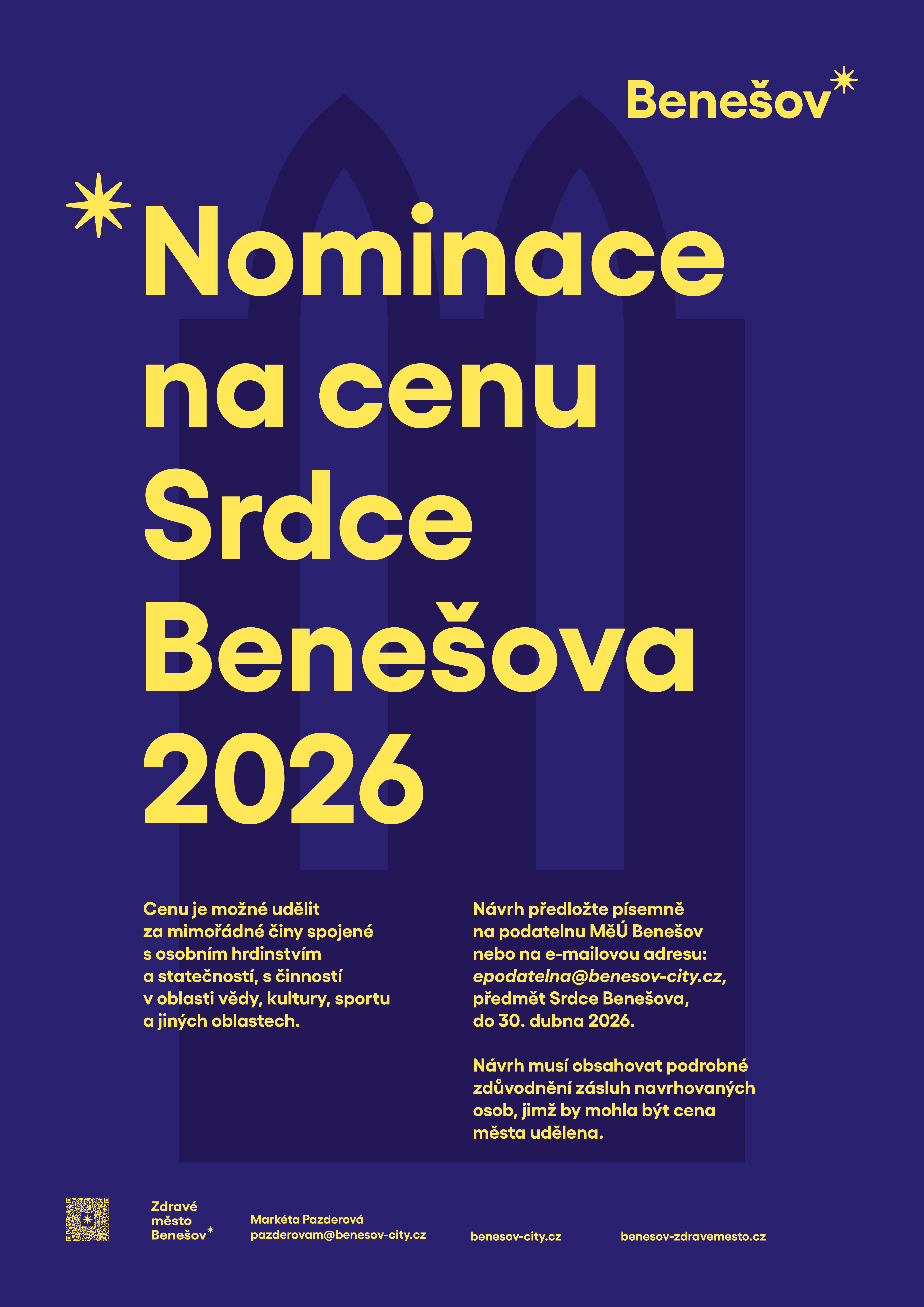 · e-mailem na adresu epodatelna@benesov-city.cz (do předmětu uveďte „Srdce Benešova“).