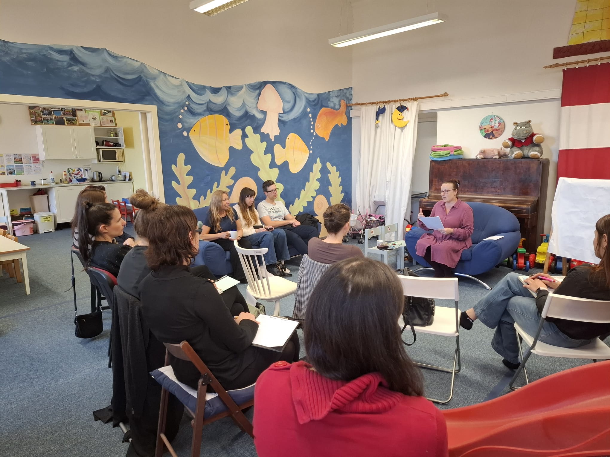 Přednášela zkušená mediátorka, terapeutka a pedagožka Mgr. Jana Šeborová, která mimo jiné nabídla přítomným rodičům praktické tipy a inspiraci z praxe.