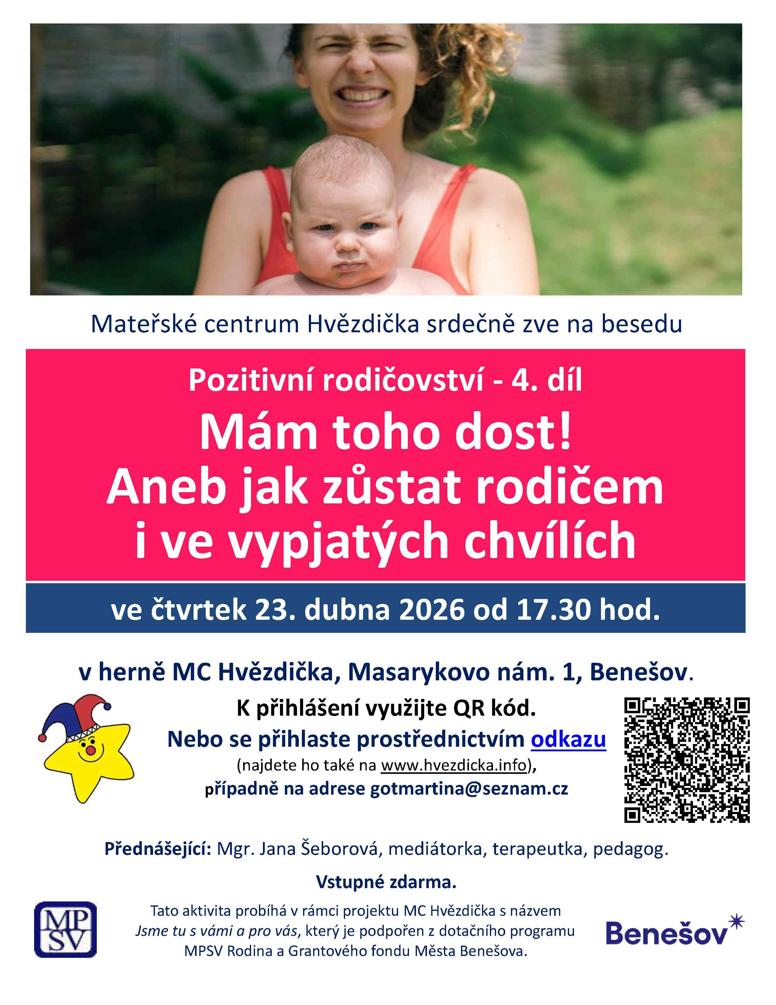 Ve čtvrtek 23. dubna nás čeká poslední čtvrtý díl s názvem „Mám toho dost aneb jak zůstat rodičem i ve vypjatých chvílích“.